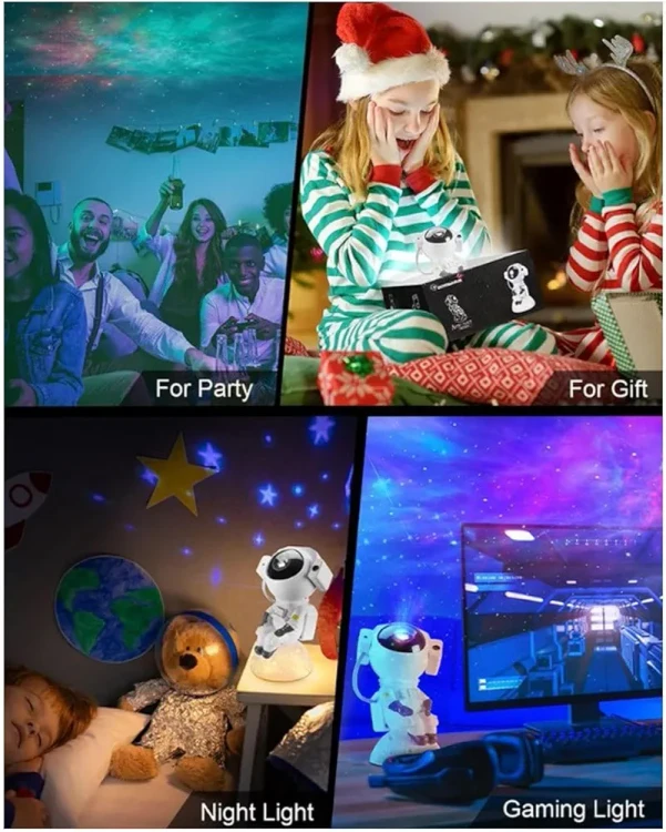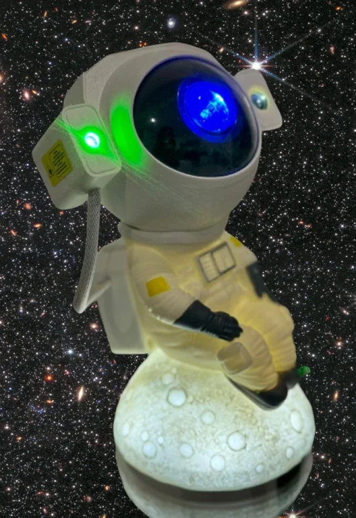 فضانورد کهکشان پروجکشن: با این ویژگی می توانید اتاق خود را به یک سرزمین عجایب کیهانی تبدیل کنید. نور شب صحنه ای خیره کننده از کهکشان را بر روی دیوارها و سقف شما پخش می کند که شامل ستاره ها، سیارات و کهکشان ها می شود. پیکره فضانورد حس خاصی به نمایشگر اضافه می کند و آن را برای علاقه مندان به فضا در تمام سنین عالی می کند.